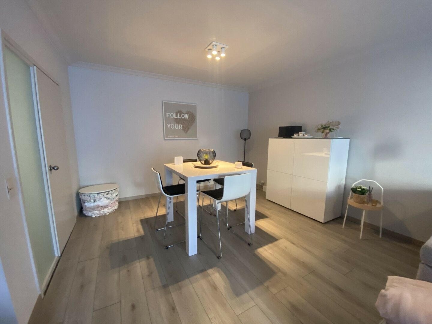The apartment is quietly situated while still being close to shops and everyday amenities, offering an ideal combination of tranquility and accessibility.