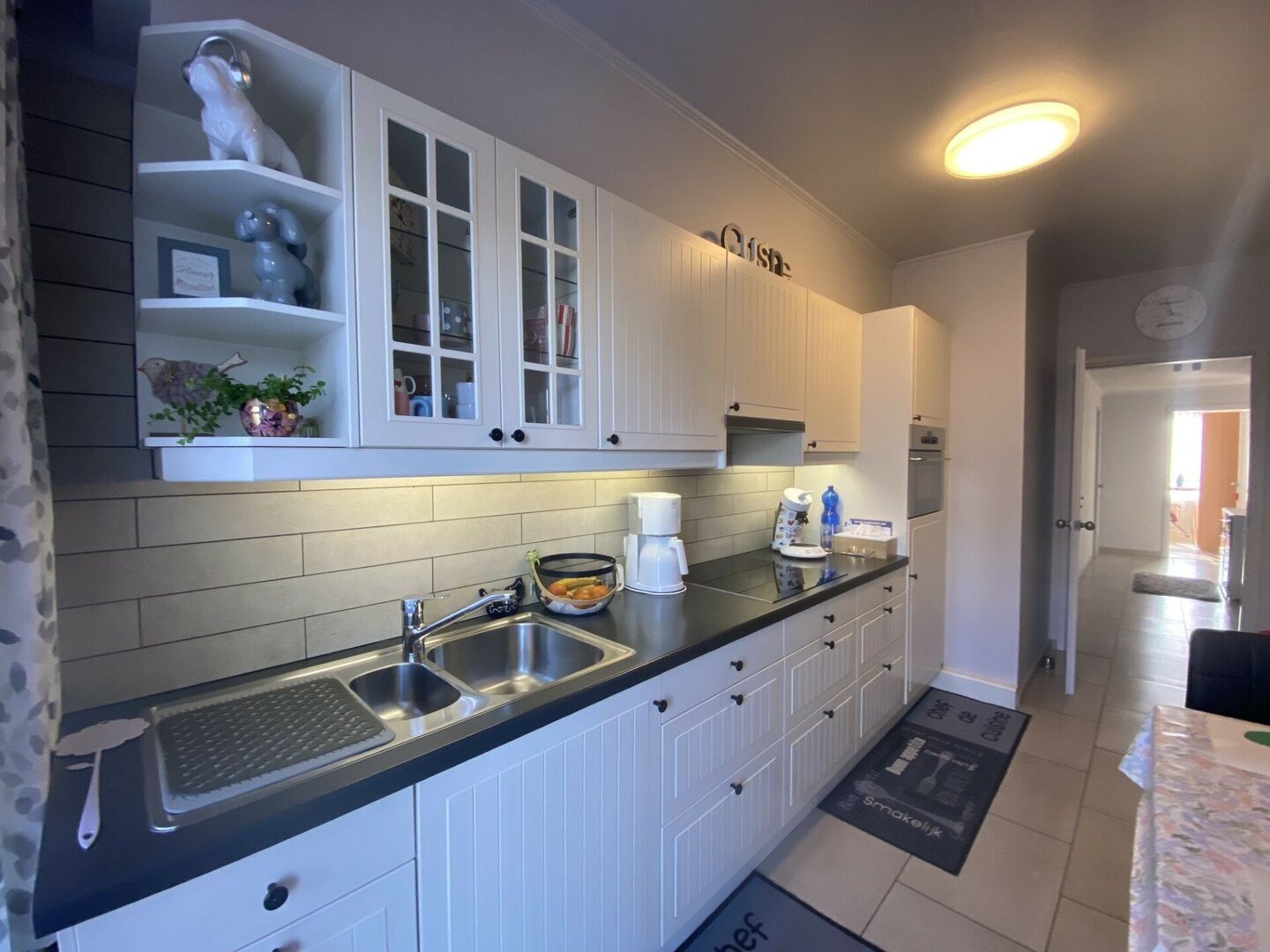 The kitchen is practically and modernly fitted and also provides access to the terrace.