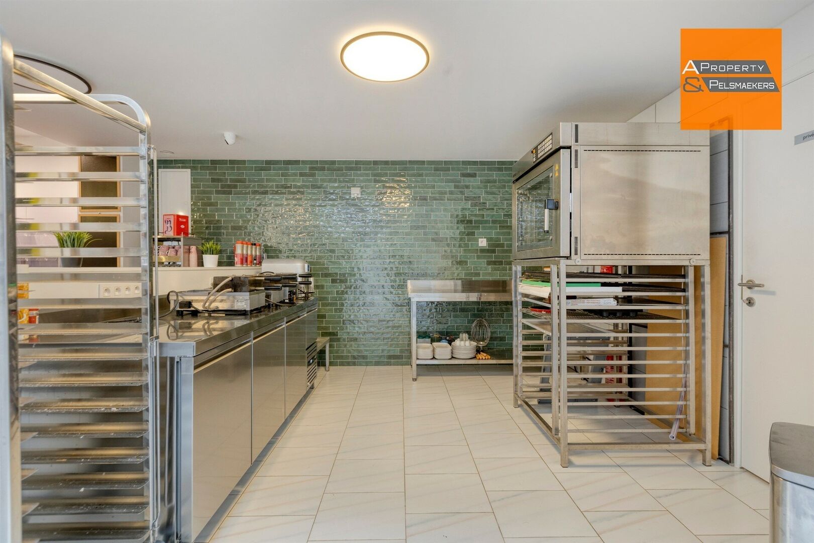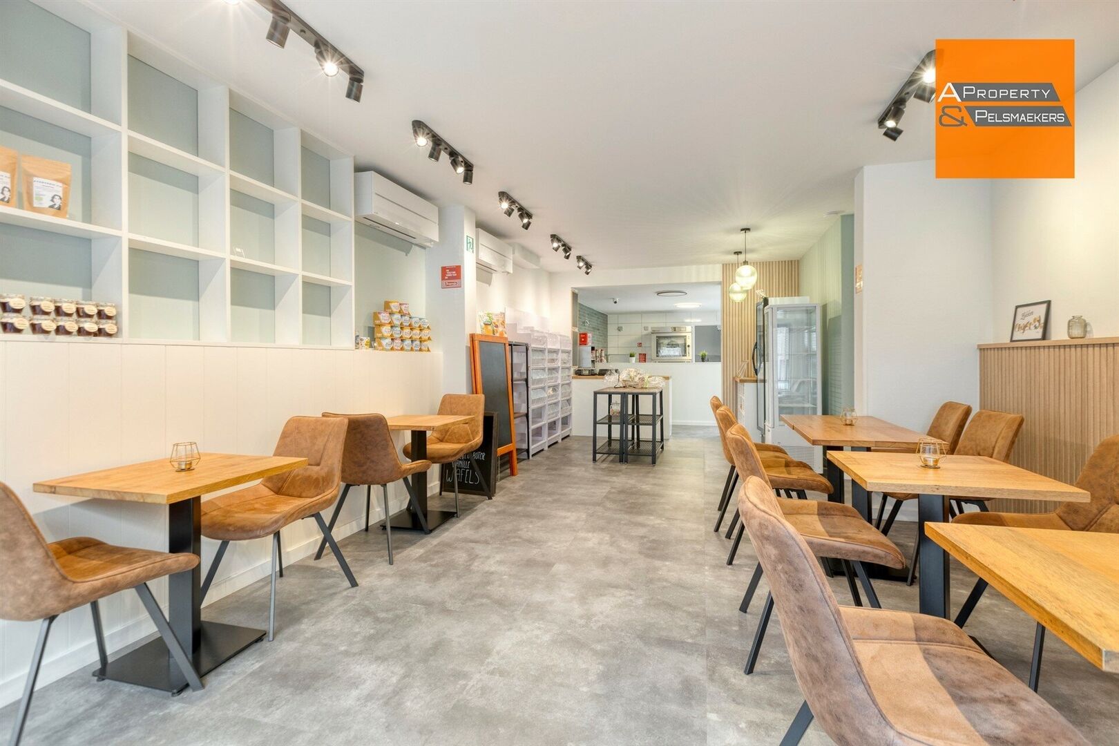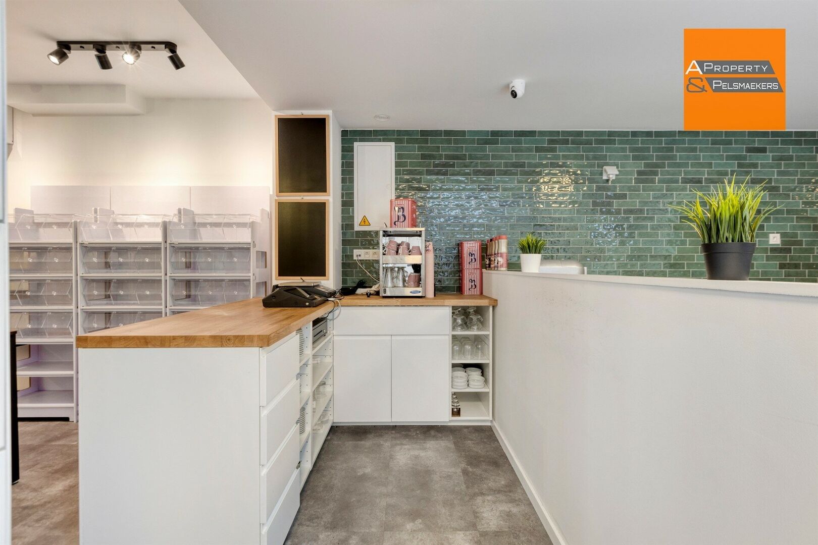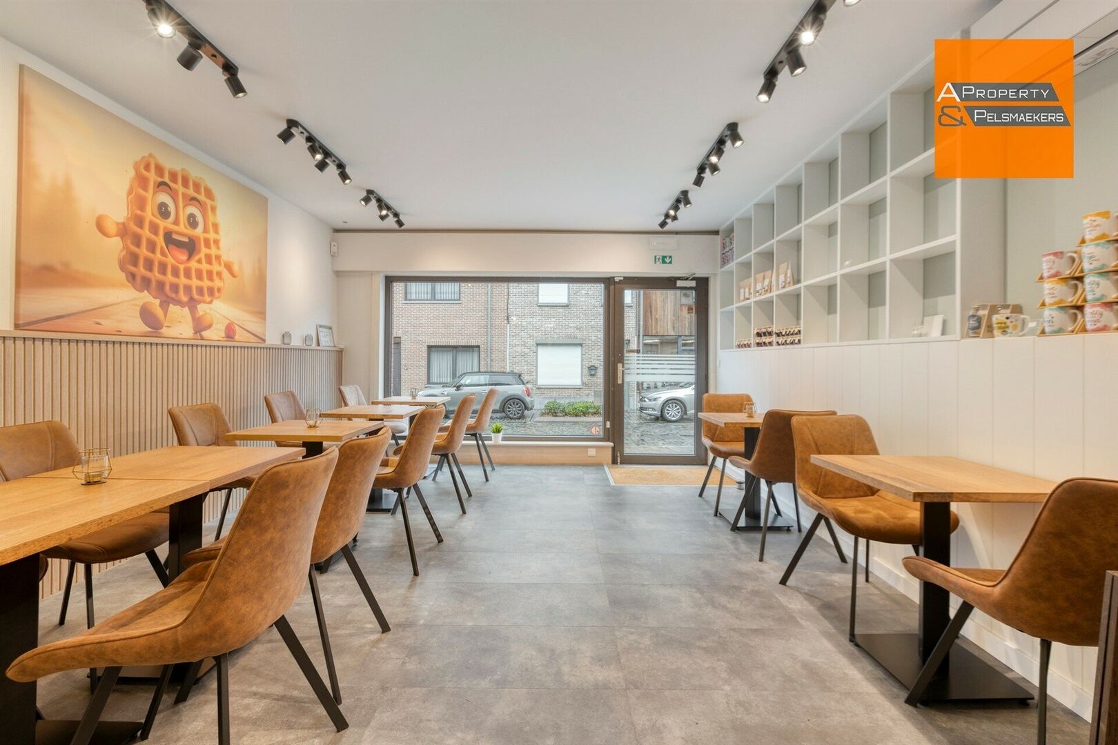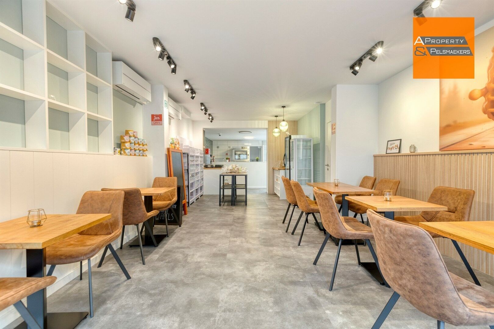 A fully equipped ground-floor commercial space comprising a dining area with air conditioning, a fully fitted kitchen, a bar counter, a toilet, a practical utility room and a terrace.