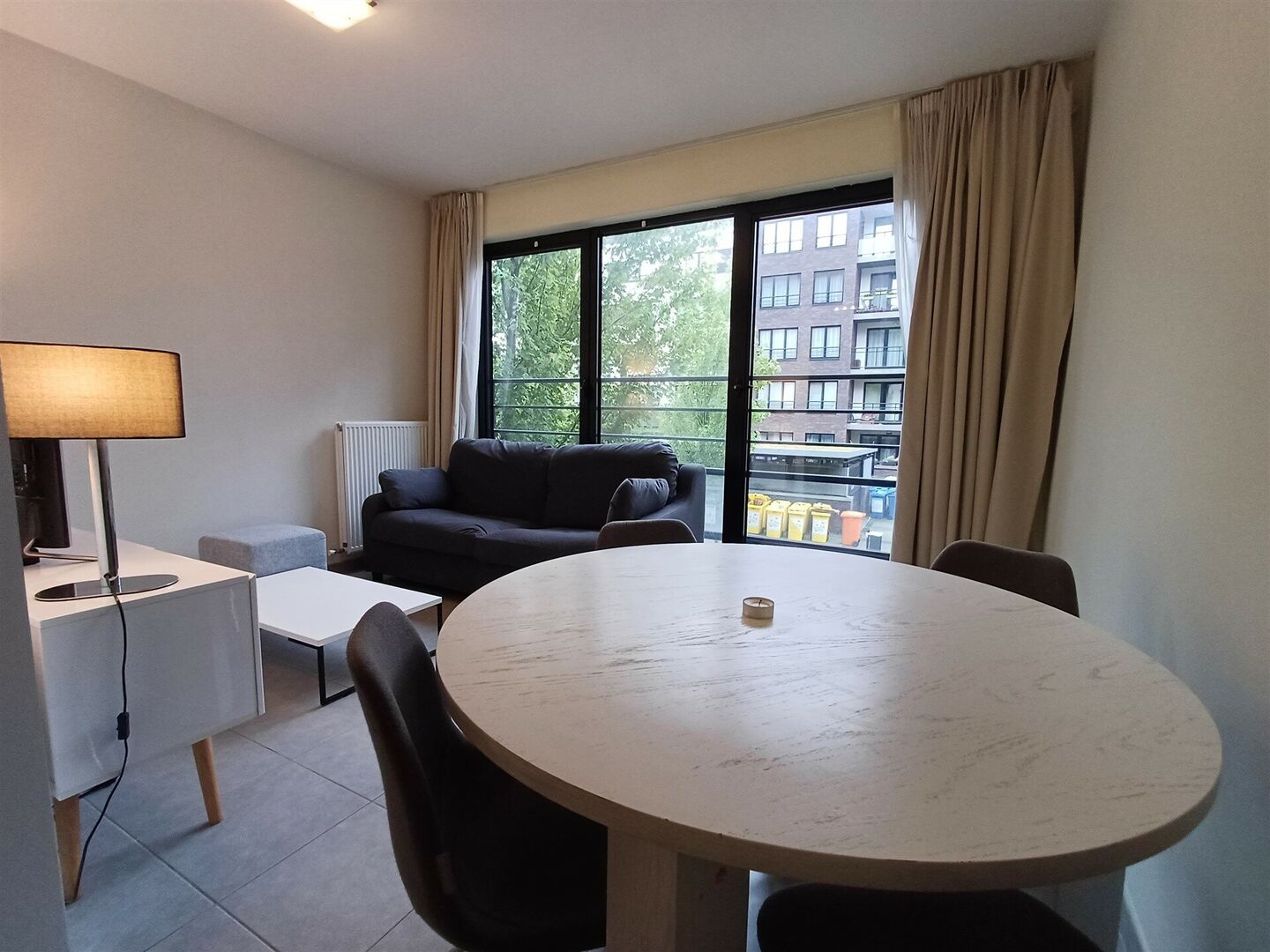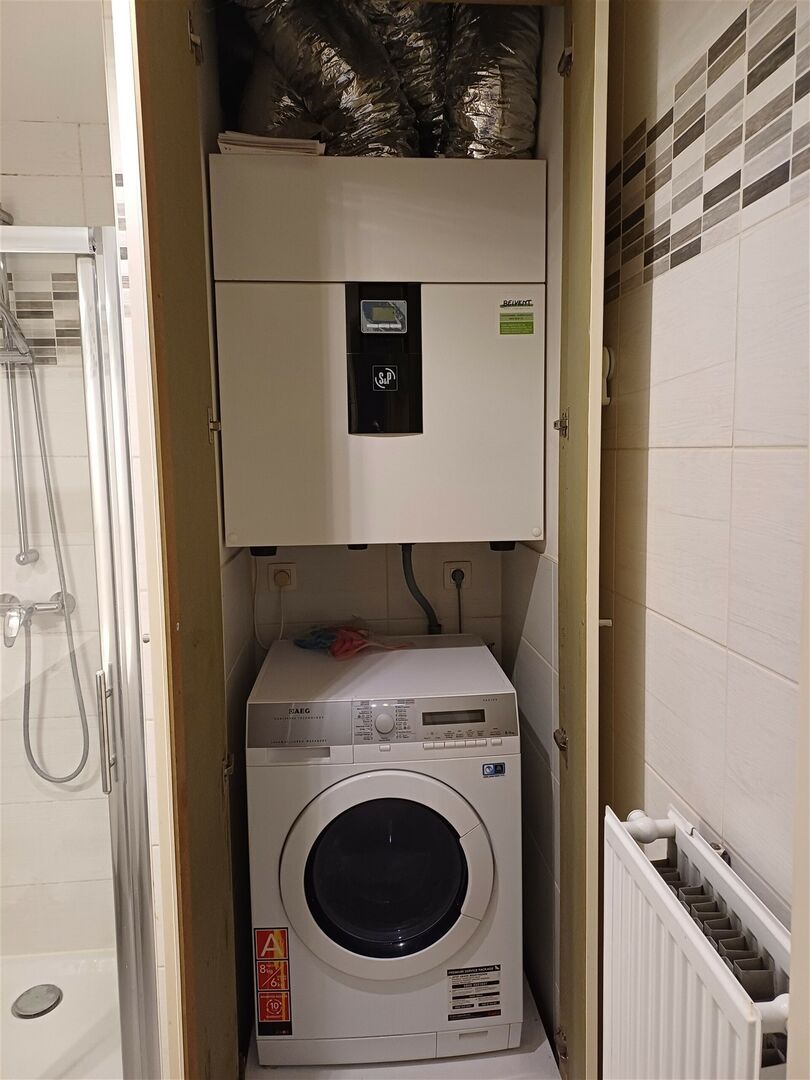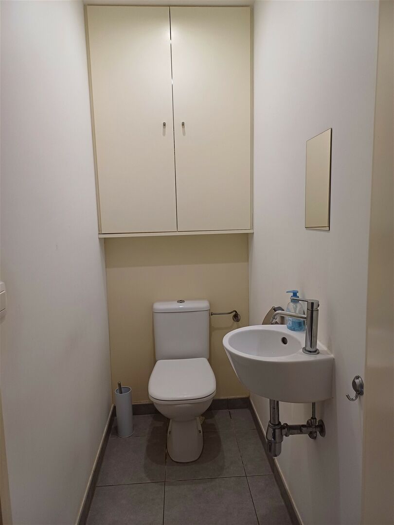 On the 1st floor of a recent building you will find this large studio apartment with full kitchen (oven, fridge, 4-burner hob, extractor fan, sink), shower room with shower, washbasin and laundry area, separate WC and spacious living area of +/- 27 m².