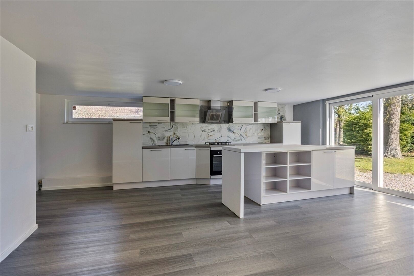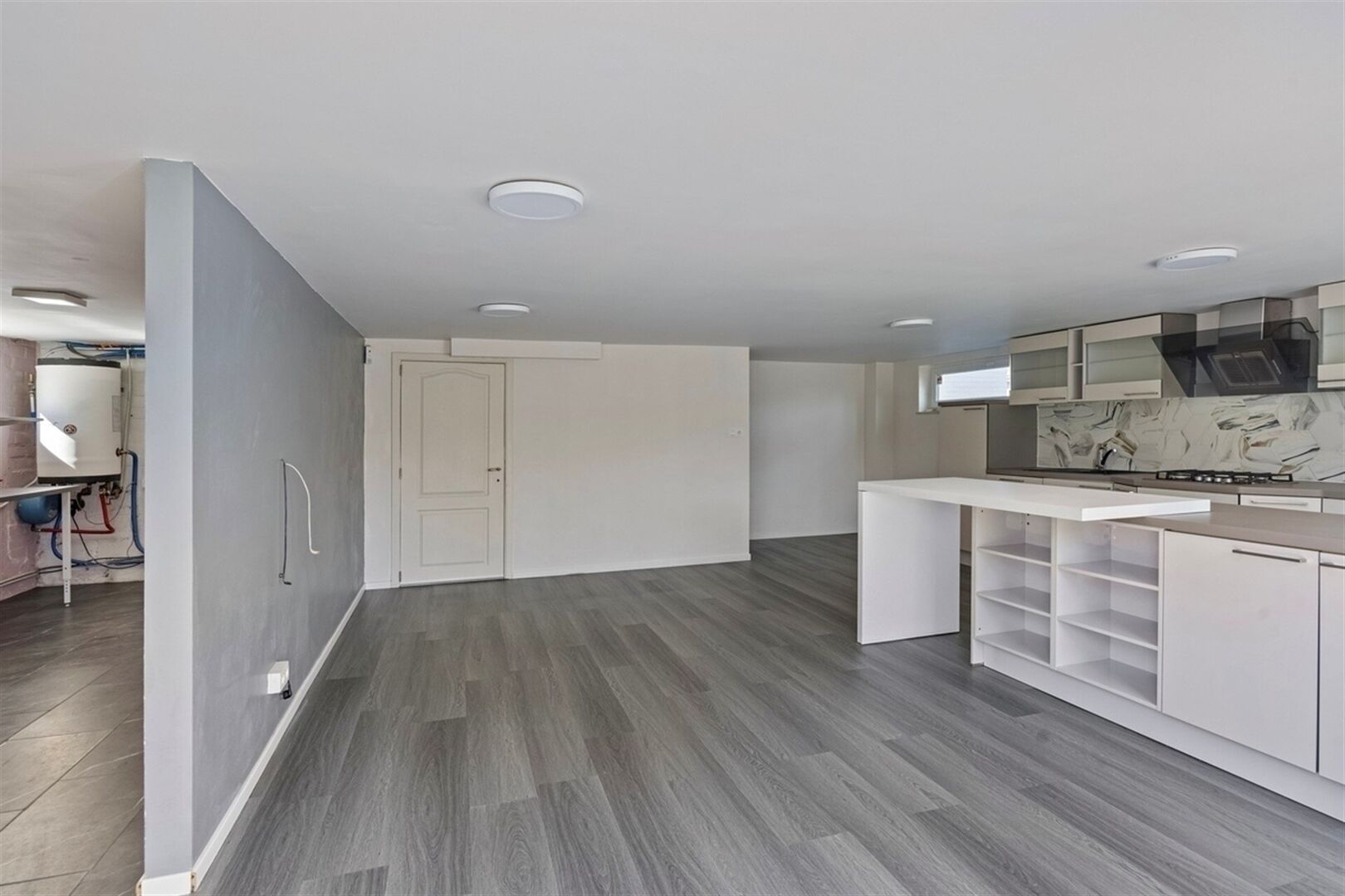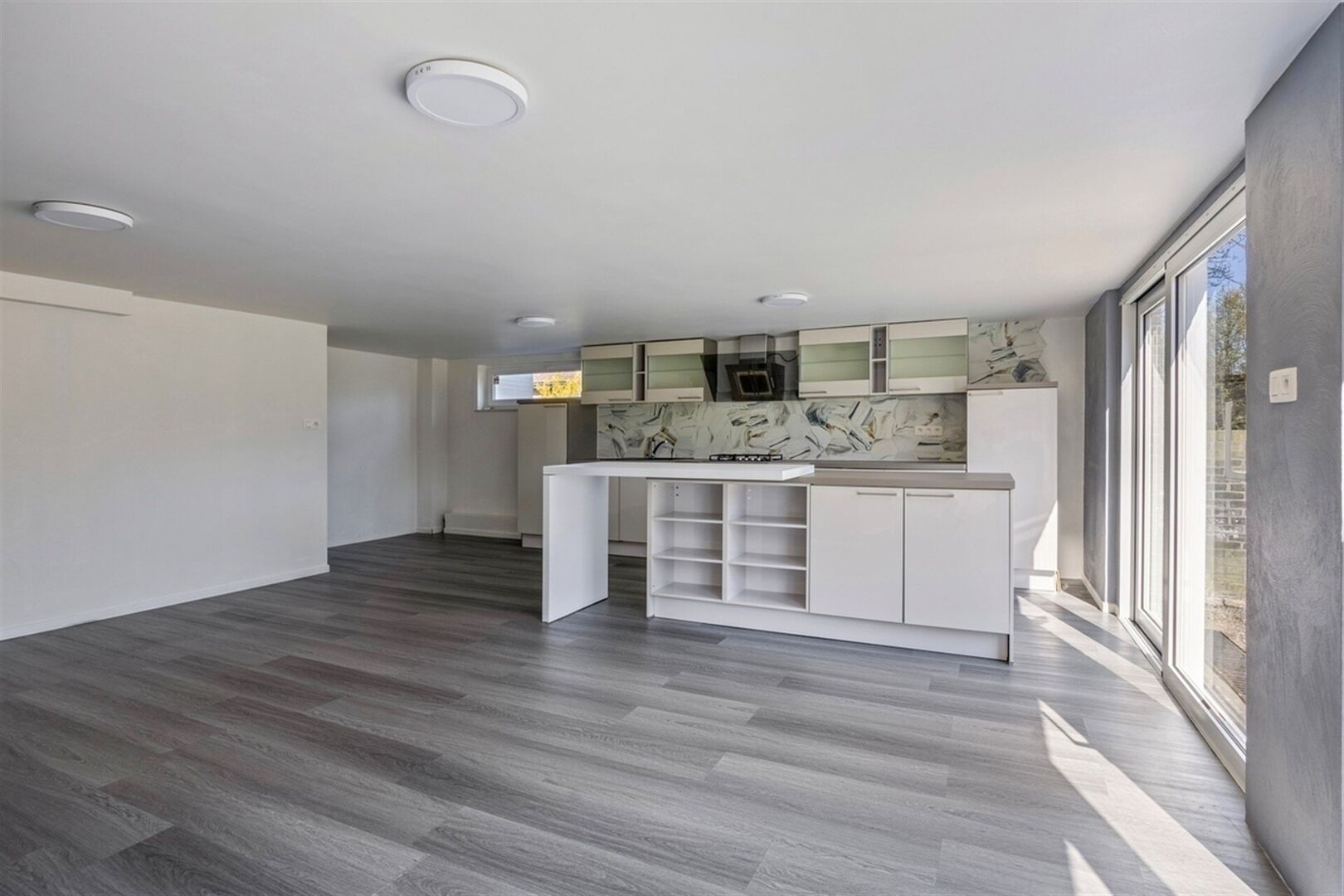 At the garden level, the new living kitchen (+/- 45 m²) equipped with a large island is a dream for any hobby chef. With its functional layout, it is the place to host guests. The garden can be accessed via two large sliding windows.