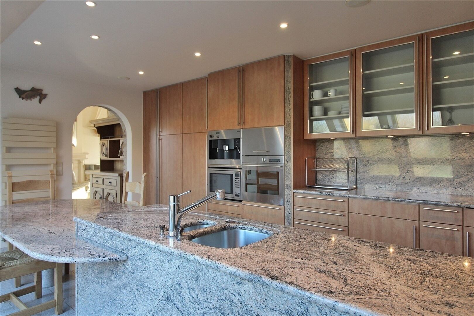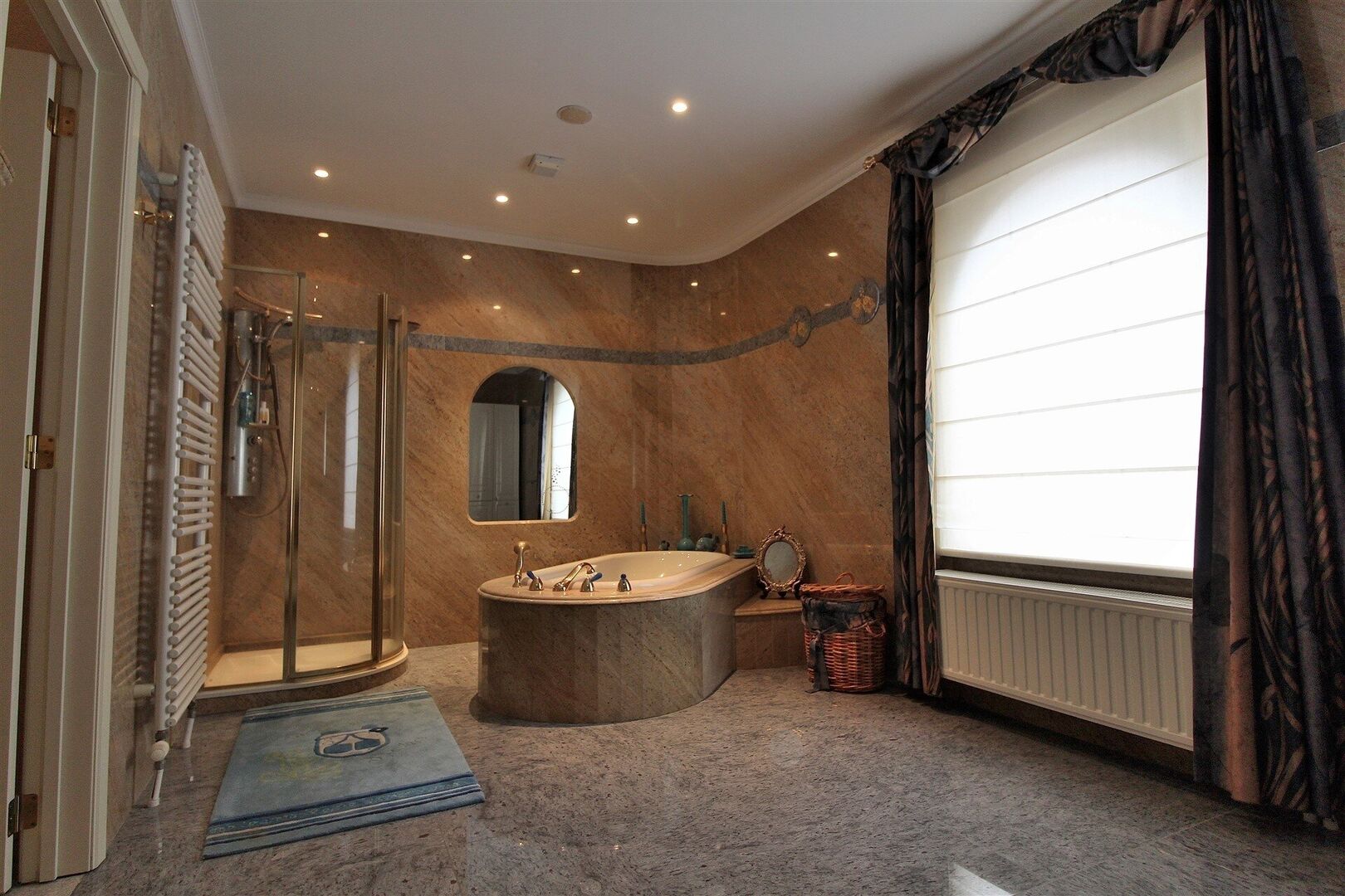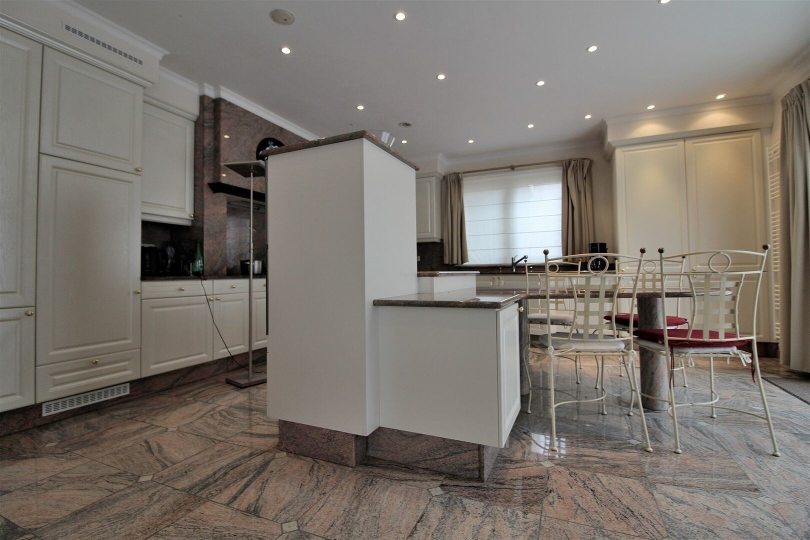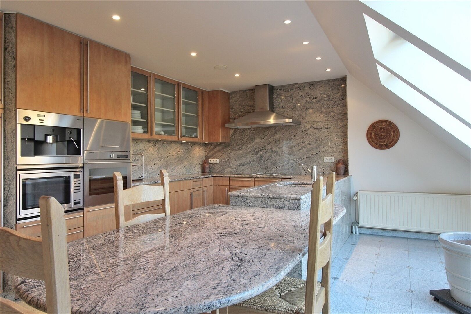 -Appartement de +/-203 m² brut (+/-165 m²): hall d'entrée avec toilettes et lavabo séparés, coin salon confortable et spacieux avec cheminée, coin repas, coin bureau, cuisine très spacieuse et super équipée avec table pour 4 personnes, grande chambre avec placards intégrés et salle de bain attenante (+/- 16m²) avec baignoire jacuzzi, douche, toilettes et double lavabo, + grande terrasse de 42 m².