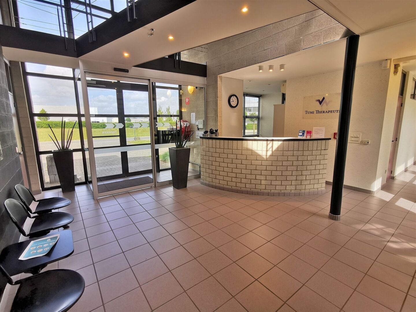 Le bâtiment est divisé en 25 beaux bureaux contemporains allant de 17 à 41 m², 3 salles de réunion (4, 6, 14 personnes), des kitchenettes entièrement équipées, des installations sanitaires soignées, une douche, l'air conditionné, l'internet, un garage, 4 portes sectionnelles, 30 places de parking, une cour-jardin et 120 panneaux solaires.