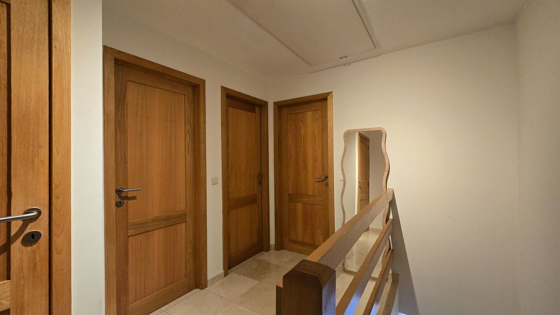 À l’étage supérieur se trouvent deux chambres, ainsi qu’une salle de bain et un WC séparé.