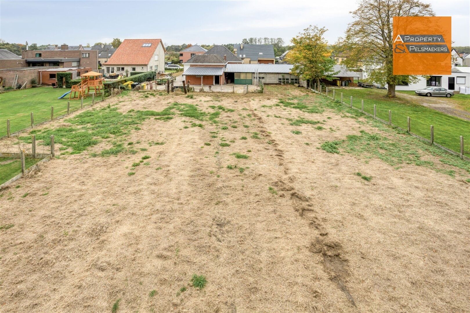 Le terrain offre un agréable jardin en grande partie clôturé avec beaucoup d'espace pour jouer et se détendre. L'allée est spacieuse et il y a suffisamment de places de parking sur le terrain.
