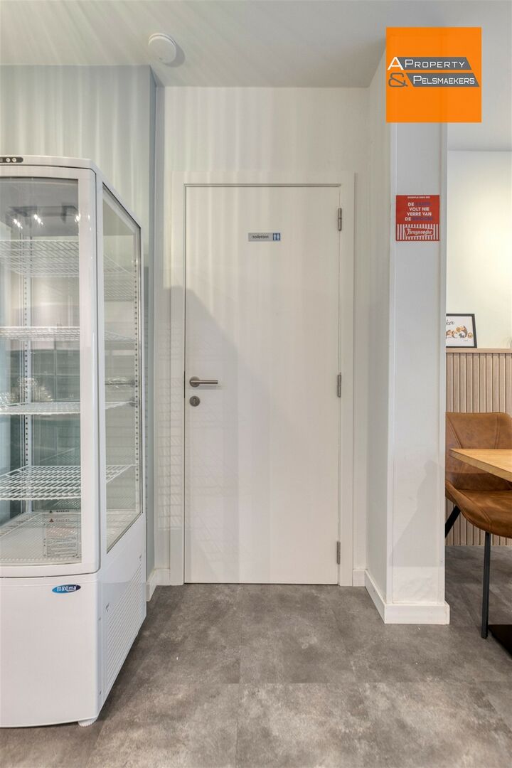 Rez-de-chaussée commercial entièrement équipé, comprenant une salle de restauration climatisée, une cuisine entièrement équipée, un comptoir, des toilettes, une arrière-cuisine pratique et une terrasse.