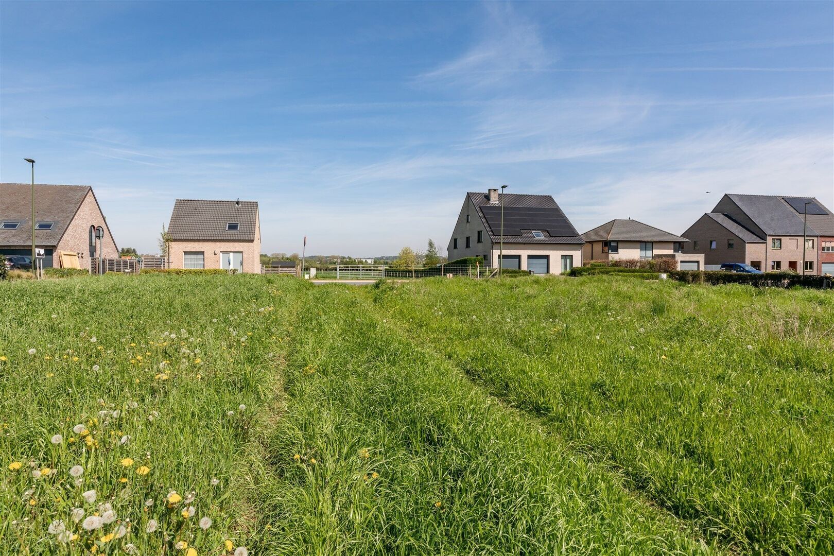 Le terrain est situé dans un quartier résidentiel à caractère rural et offre la possibilité de créer un bâtiment mitoyen avec une façade arrière entièrement exposée sud.