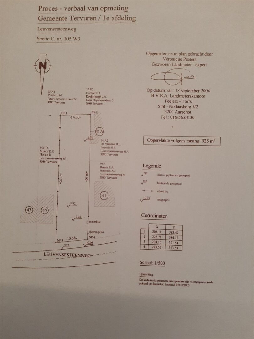 Ce terrain orienté sud à une largeur côté rue de +/- 15,50 m sur une profondeur de +/- 61 m pour une superficie totale de +/- 925 m².