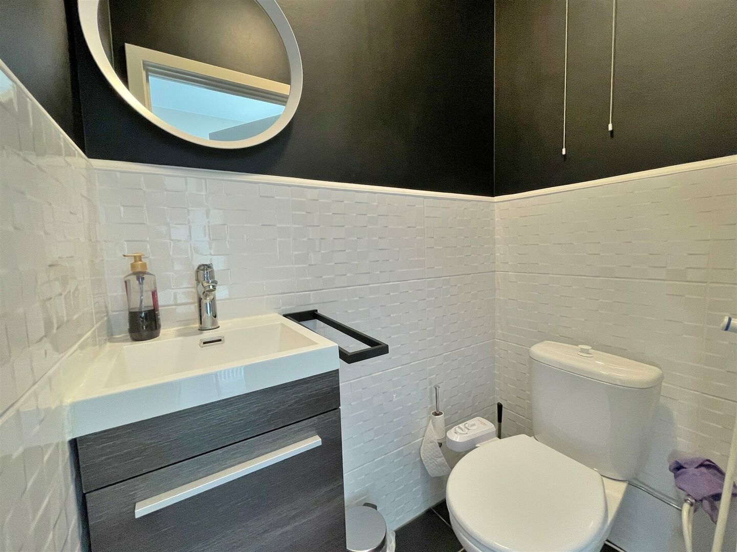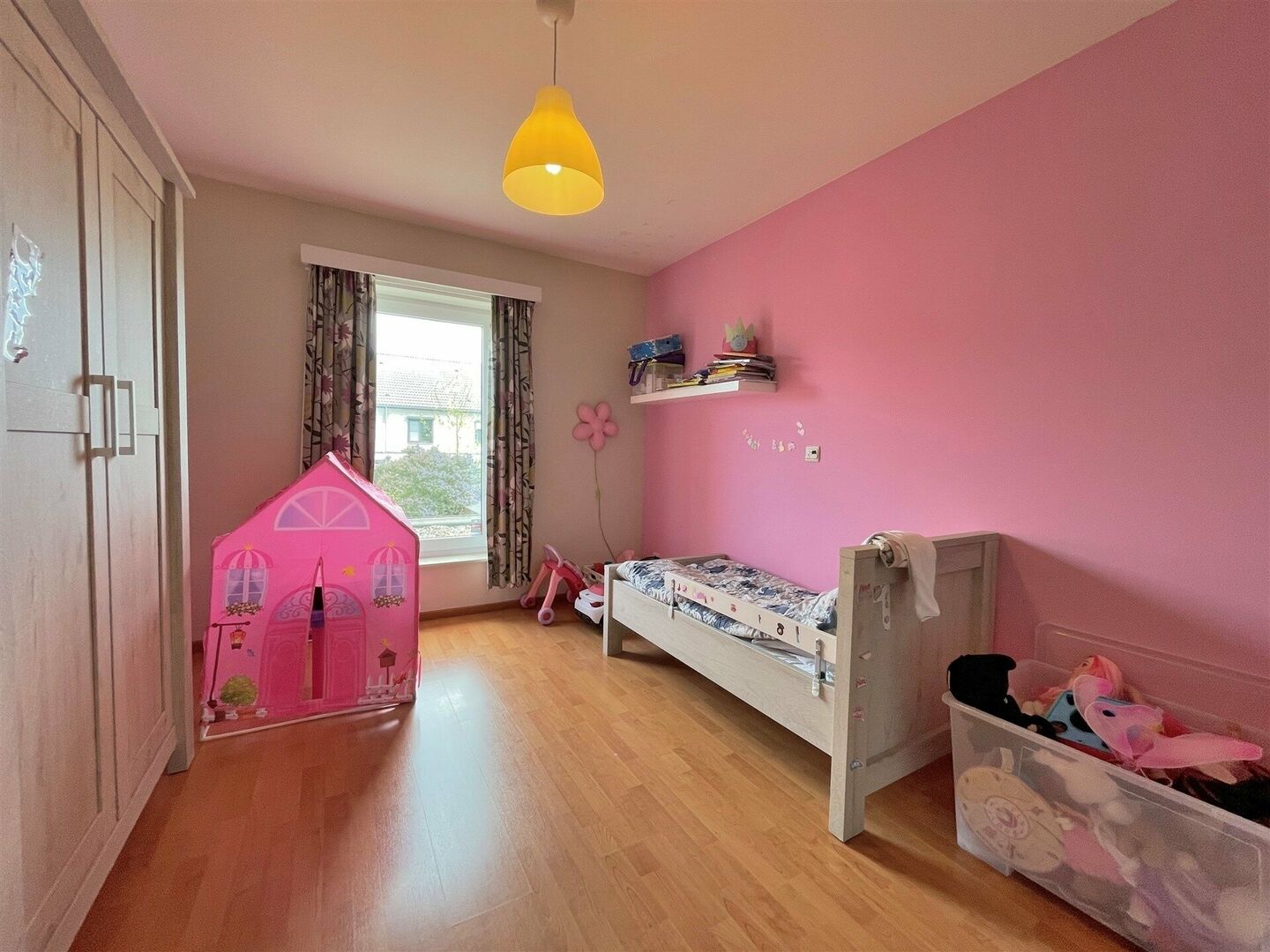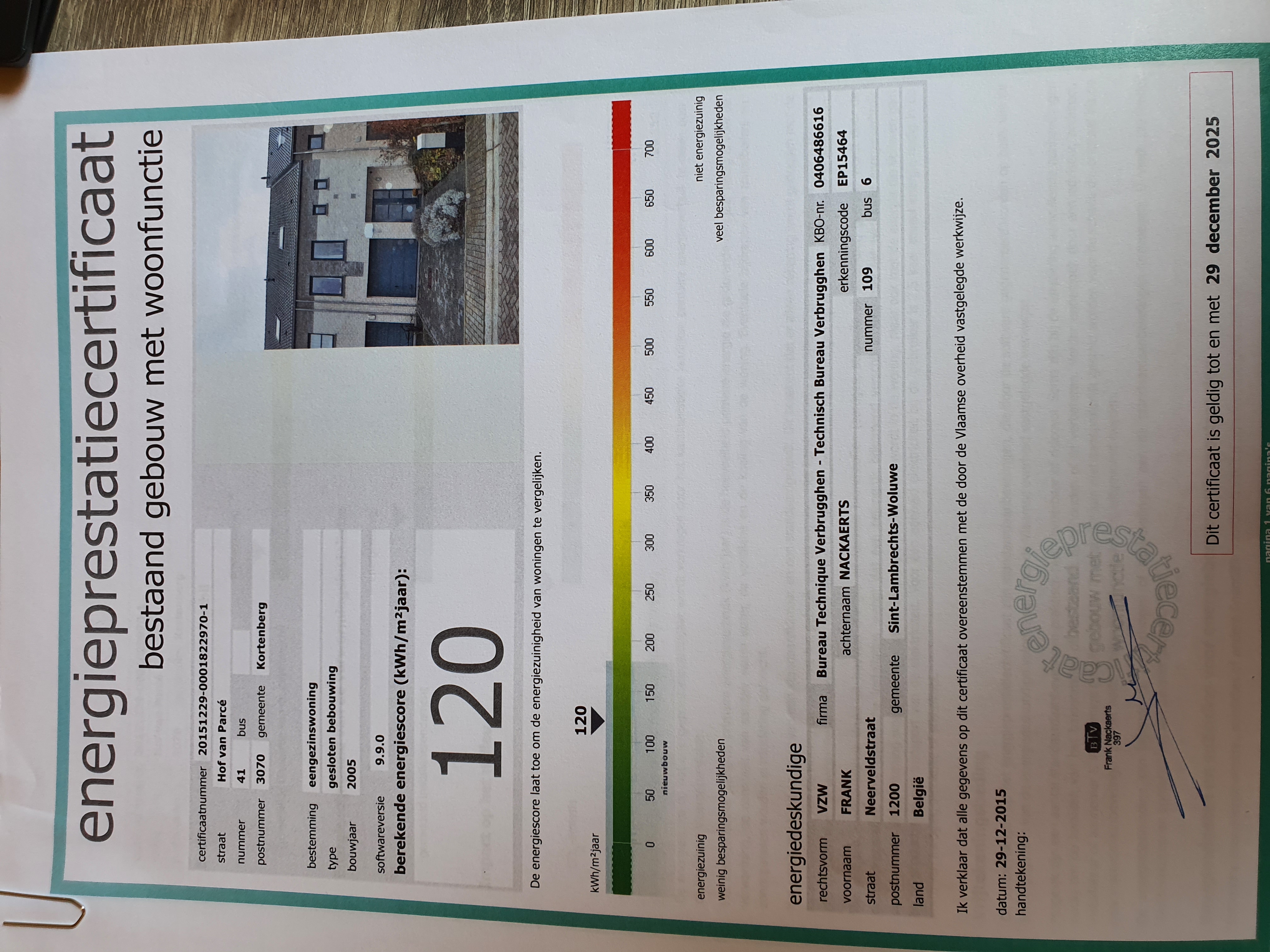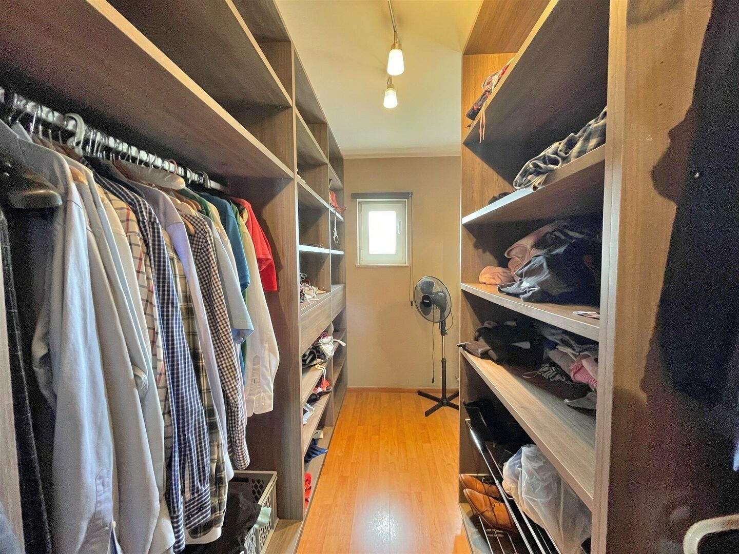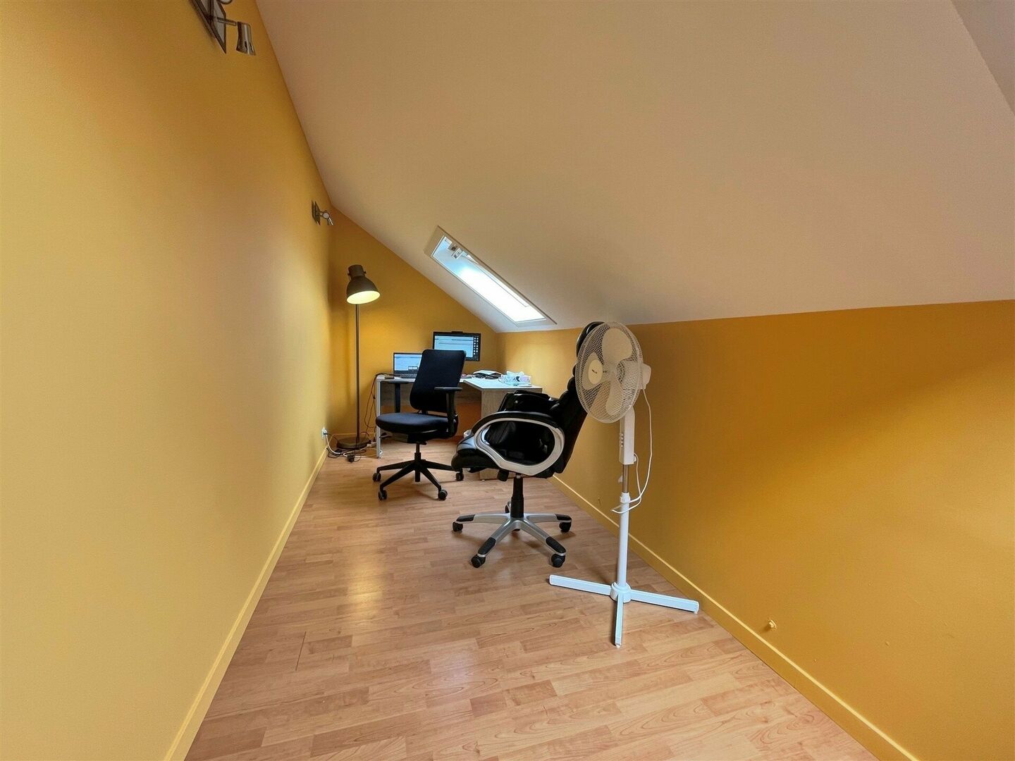 Indeling: inkomhal, apart toilet, ruime leefruimte met zicht op de tuin, volledig ingerichte keuken. Op de 1e verdieping zijn er 3 slpks (15m², 11m² en 11m²), badkamer met bad, douche wc en badkamermeubel, de masterbedroom (15m²) heeft aansluitend een dressing (8m²). De zolder werd volledig ingericht in een bureau, gastenkamer (29m²) en badkamer met douche, wc en badkamermeubel. Er is een inpandige garage en de mogelijkheid om 2 wagens buiten te parkeren.