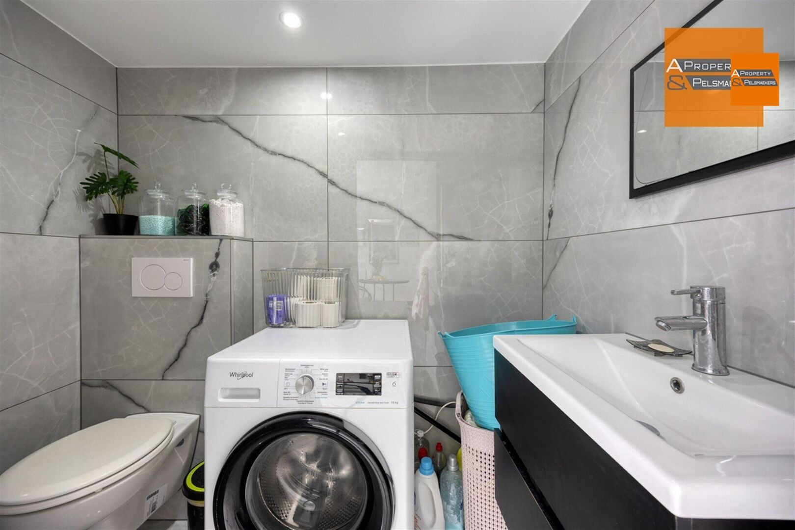 Aparte WC met lavabo en aansluiting voor wasmachine.