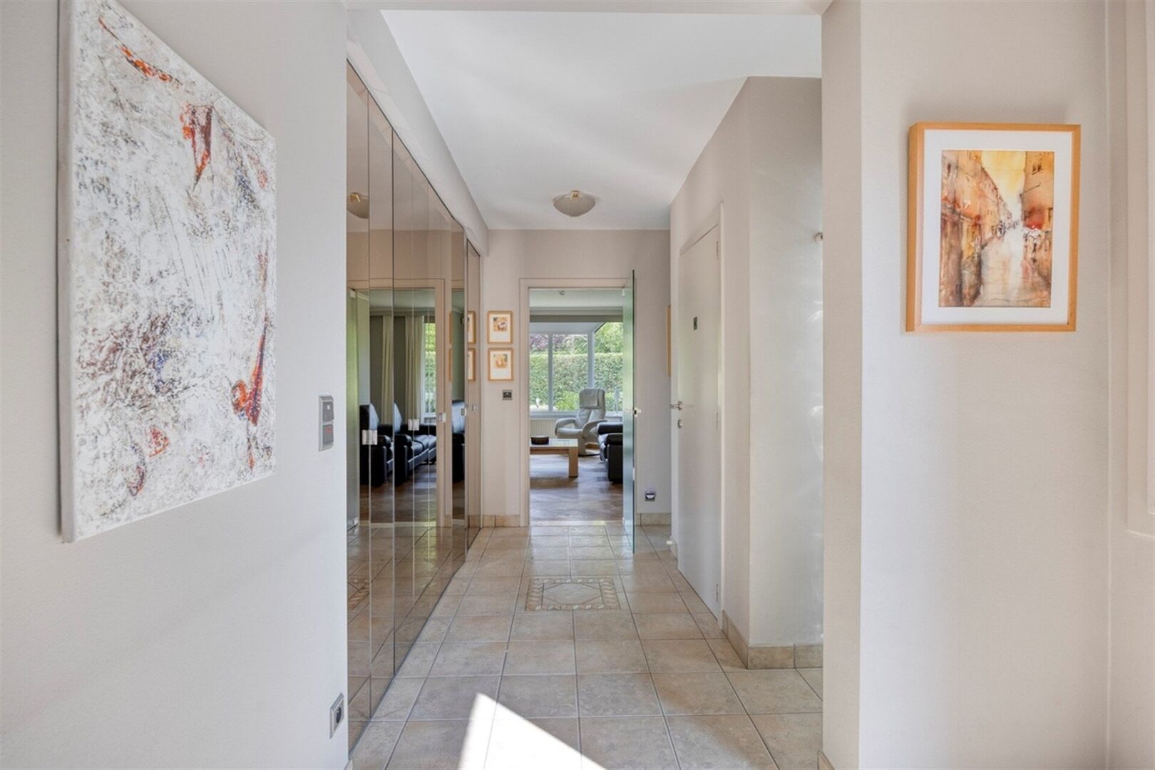 - Grote leefruimte met open keuken en zicht op de tuin.